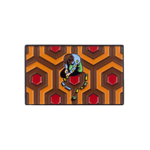 MondoA hypnotic design from DKNG that finds the mathematical patterns of The Overlook Hotel's madness. 1.7" soft enamel pin on 2" x 2" backing.